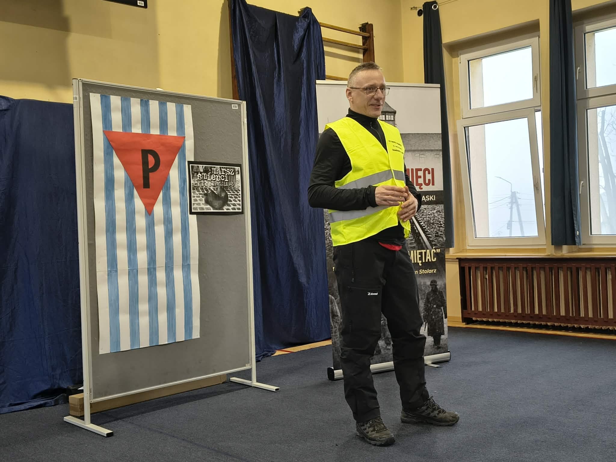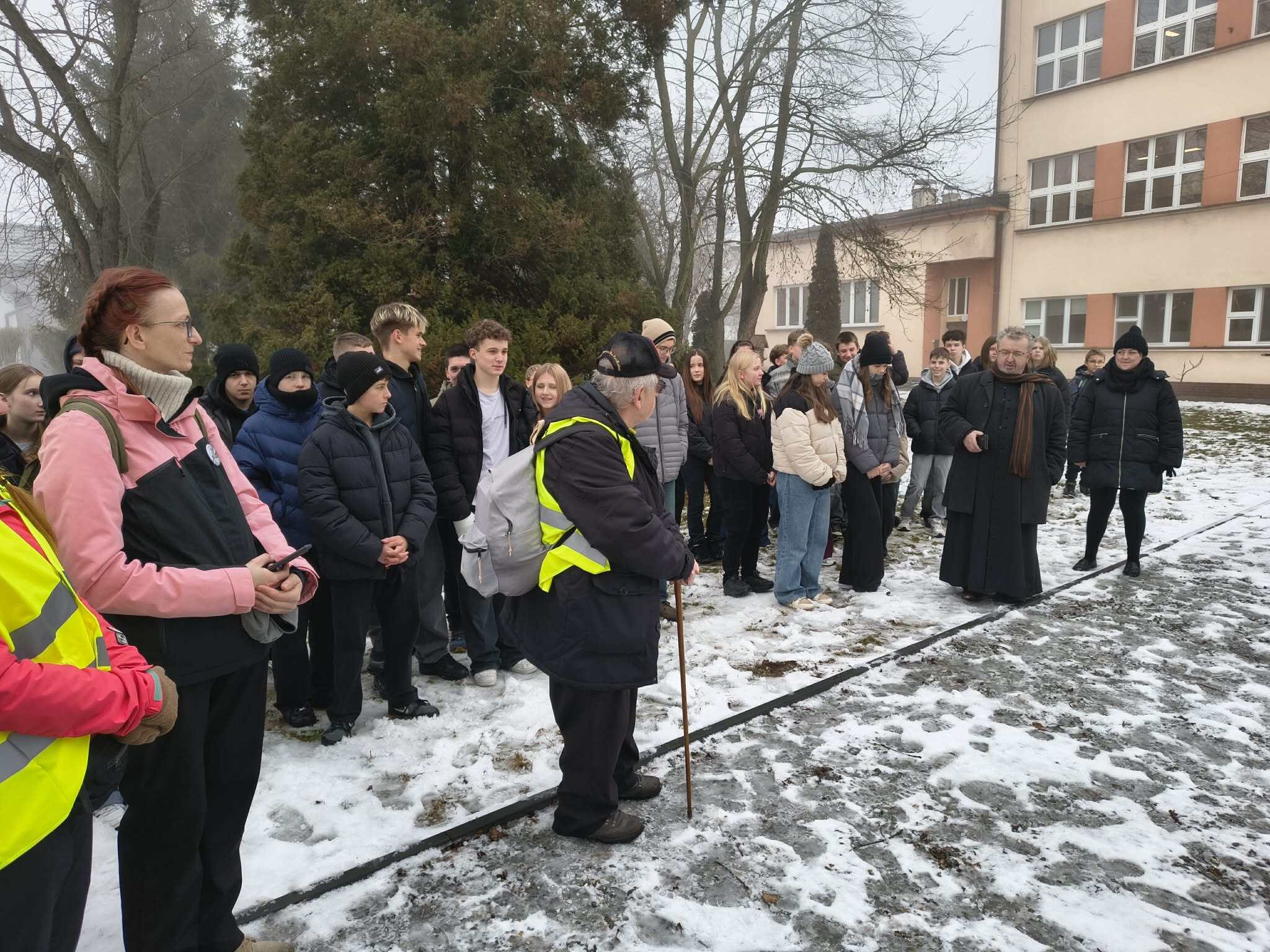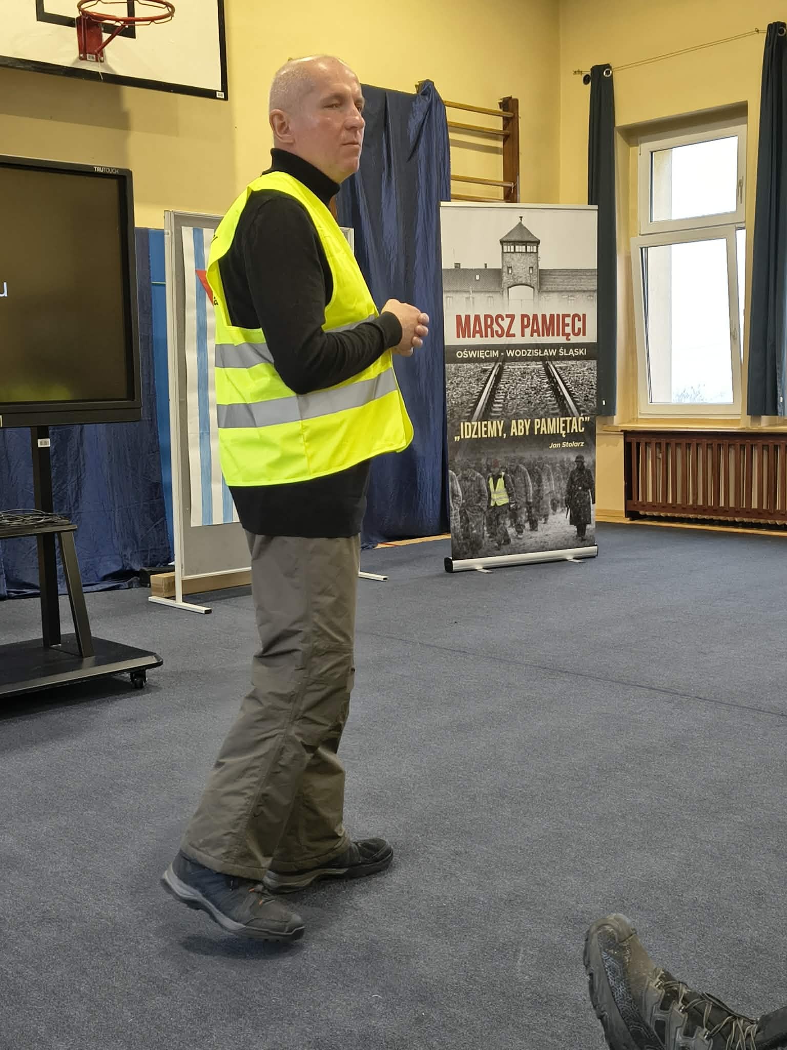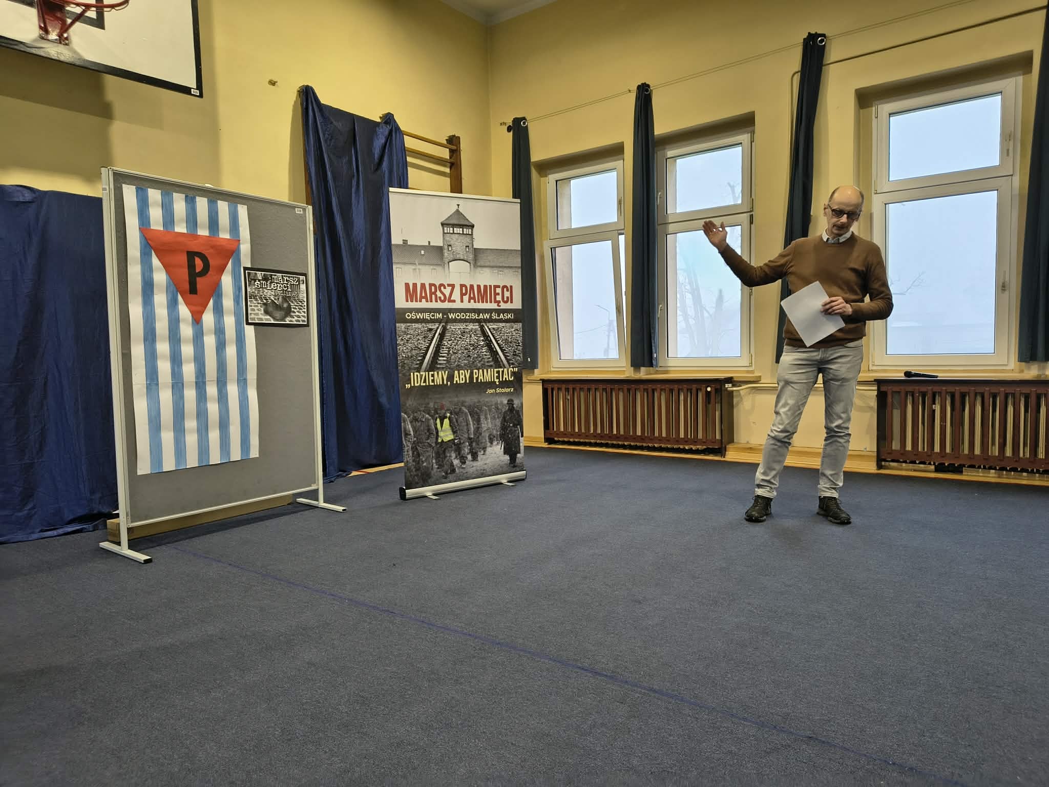 19 stycznia 2024 roku, w Szkole Podstawowej im. Powstańców Śląskich w Miedźnej, odbyła się uroczysta prelekcja dotycząca 79. rocznicy tragicznej ewakuacji więźniów KL Auschwitz – Birkenau. Uroczystości rozpoczęli uczniowie, którzy przygotowali specjalną akademię, podczas której przedstawiono ważne fakty dotyczące marszu śmierci ze stycznia 1945 r., a także rys historyczny przedsięwzięcia, którego pomysłodawcą był Jan Stolarz. W imieniu grupy piechurów głos zabierali Robert Furtak i Zbigniew Bubak, którzy w sugestywny sposób przedstawili uczniom z klas 4 – 8 tematykę wydarzeń sprzed lat. Po apelu społeczność szkolna, zaproszeni goście i uczestnicy XIII Marszu Pamięci udali się na miejscowy cmentarz, aby przy grobie Ofiar marszu śmierci oddać hołd zamordowanym w tej okolicy podczas marszu ewakuacyjnego. Młodzież szkolna towarzyszyła piechurom w dalszym marszu aż do drogi prowadzącej w kierunku Pszczyny. W Ćwiklicach uczestnicy marszu spotkali się obok pomnika, który mieści się przy budynku Szkoły Podstawowej im. Żołnierzy Września, z uczniami najstarszych klas, którym towarzyszyli wychowawcy oraz dyrektor. Była okazja zaplanować wspólne działania na dalsze lata, ale przede wszystkim połączyć się we wspólnej modlitwie i refleksji ku czci Ofiar II wojny światowej, marszu śmierci, a także obozów koncentracyjnych. W Pszczynie uczestnicy XIII Marszu Pamięci zatrzymali się przy tablicy pamięci, która znajduje się przybranie stadionu na ul. Bogedeina, a później udali się na cmentarz św. Krzyża przy ul. Wodzisławskiej. Oddano tutaj cześć Ofiarom marszu śmierci przy miejscowej zbiorowej mogile, a uwagę wszystkich zwróciła tablica upamiętniająca Ireneusza Rowińskiego, który zmarł na trasie marszu śmierci w wieku… 9 dni… Podobno „Irek nigdy nie płakał”, a mama – pani Leokadia Rowińska - pochowała Jego zwłoki w pudełku po makaronie… Grupa uczestników rajdu zatrzymała się również przy kościele p.w. św. Maksymiliana Kolbe w Porębie, gdzie mieści się również sugestywna i ciekawa rzeźba przedstawiająca wspomnianą postać. W Brzeźcach piechurzy spotkali się przy grobie Ofiar marszu śmierci z przedstawicielami społeczności lokalnej oraz delegacją mieszkańców Studzionki. Udało się tutaj zdobyć bardzo interesujące informacje na temat wydarzeń w czasów II wojny światowej oraz mniej znanych faktów z życiorysów miejscowych Bohaterów tamtych dni… Wieczorem uczestnicy XIII Marszu Pamięci im. Jana Stolarza dotarli do Studzionki, gdzie udali się na nocleg w prywatnych domach. Za gościnę – tak jest od pierwszej edycji rajdu – serdecznie dziękujemy mieszkańcom wspomnianej miejscowości.