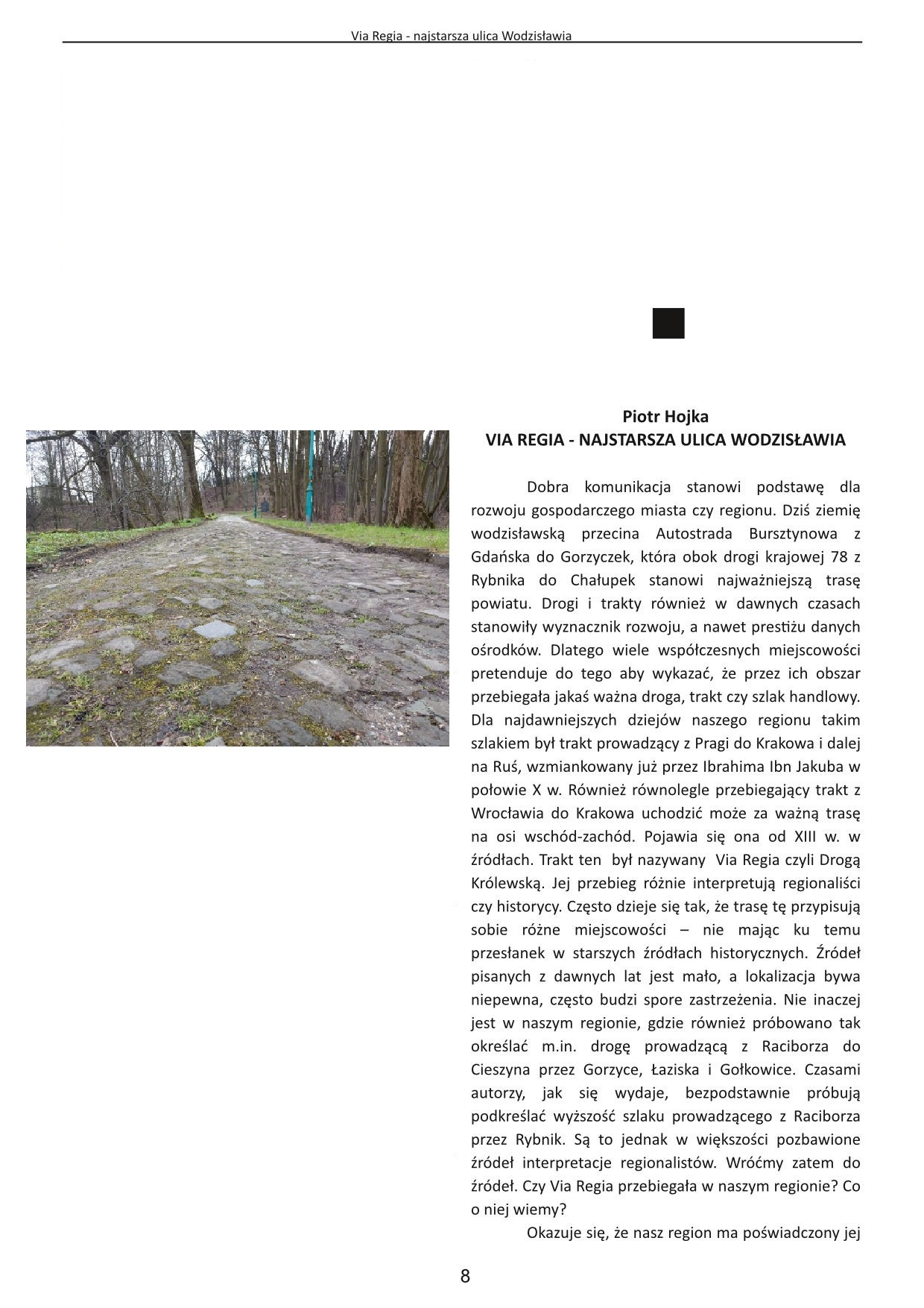Prezentujemy artykuł Piotra Hojki pt. "Via Regia - Najstarsza ulica Wodzisławia" Jest to opracowanie na temat przebiegu przez Wodzisław Śląski znanej drogi.